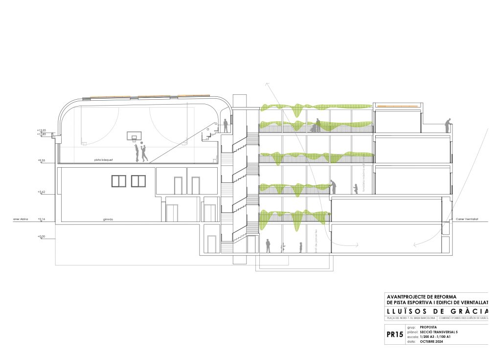 Finalment, la reforma permetrà invertir en una coberta verda, amb plaques fotovoltaiques que dotarien d’energia elèctrica a Lluïsos i al veinatge del barri.